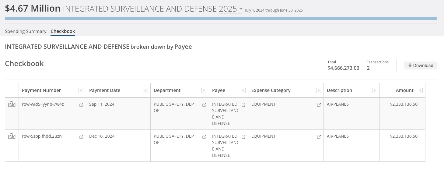 That’s a lot to spend for one plane and supporting infrastructure—nearly four times the $1.7 million the Department of Public Safety spent on a smaller plane with high-tech equipment in 2021.
