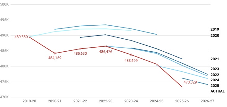 - The numerical drop in two years (FY25+26) is greater than that of any period in the last four decades (since FY84+85).