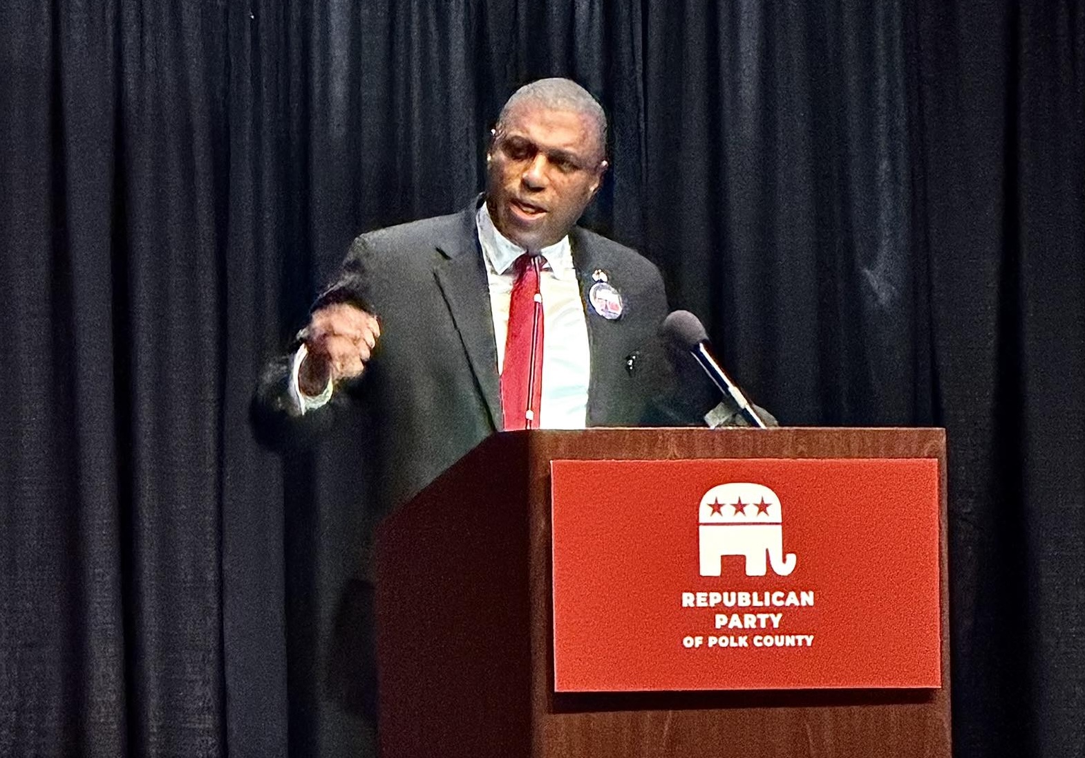 Top photo of gubernatorial candidate Eddie Andrews speaking at the Polk County GOP’s Lincoln Dinner on March 26 was first published on the Eddie Andrews for Iowa Facebook page.
